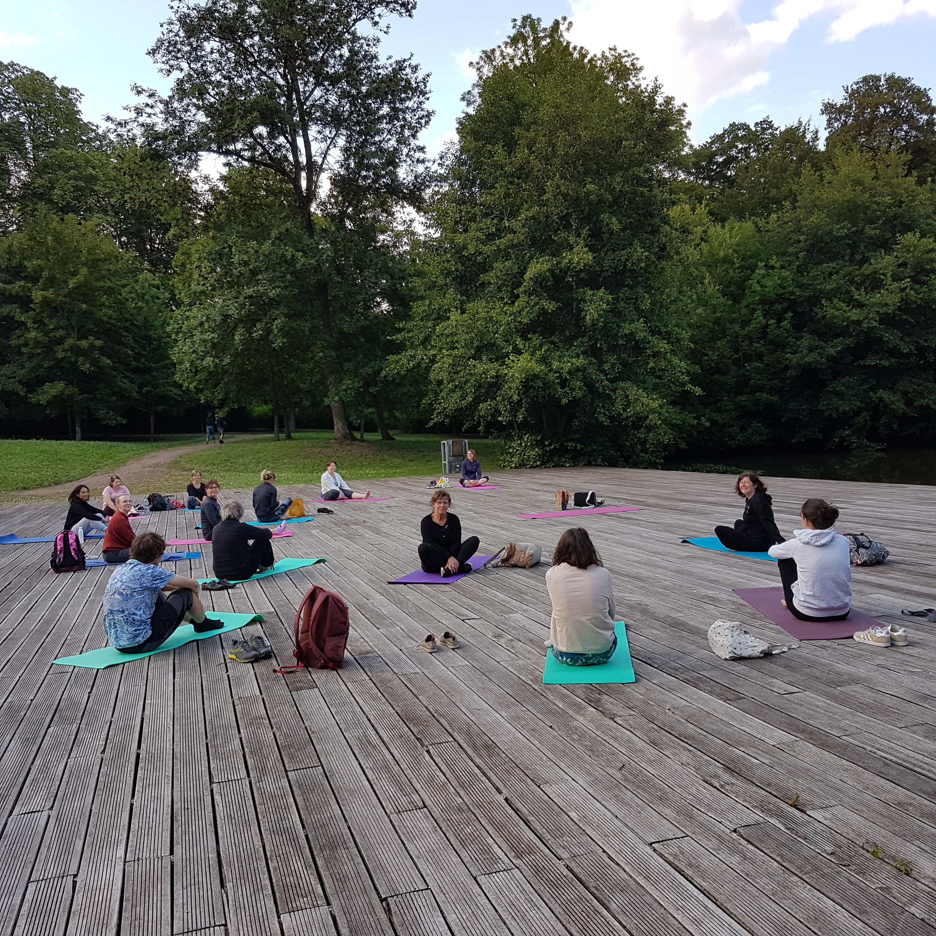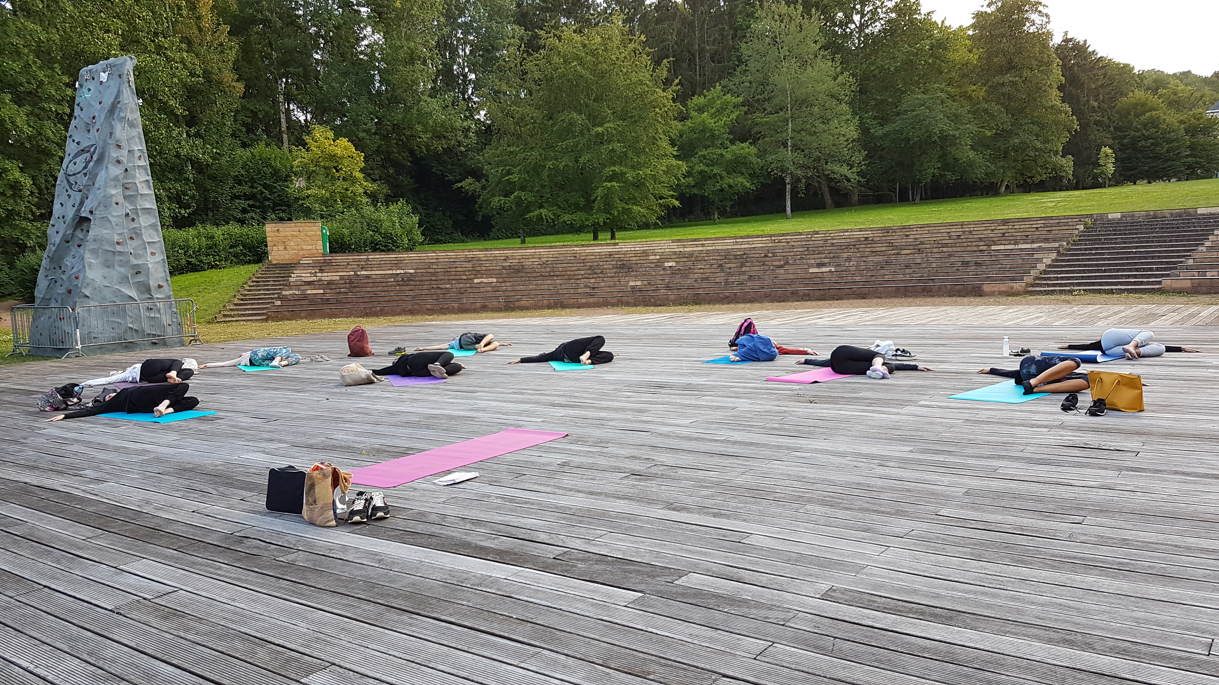 Lundi 6 Juillet 2020: Notre première séance de Yoga en plein air dans le parc pour la session « YOGA DE L’ETE » du Centre St Michel de Volkrange/Thionville.
