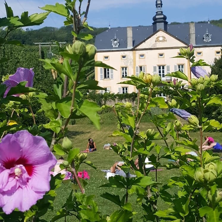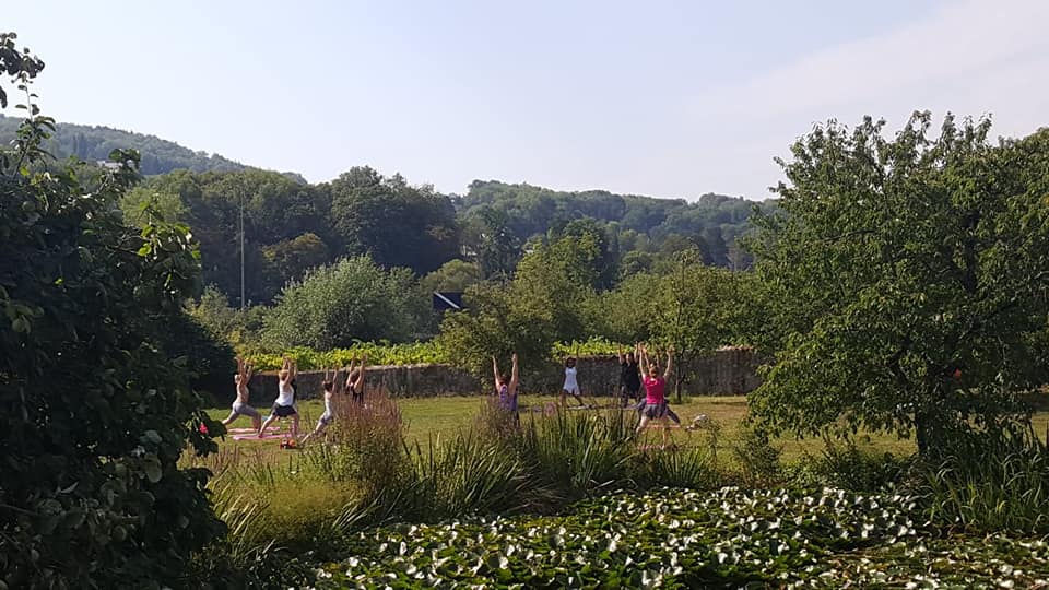 Dimanche 9 Août 2020: Une séance de yoga en plein air dans le magnifique jardin du château de Rudlingen, « Un Jardin de France » route Touristique à Sierck les Bains