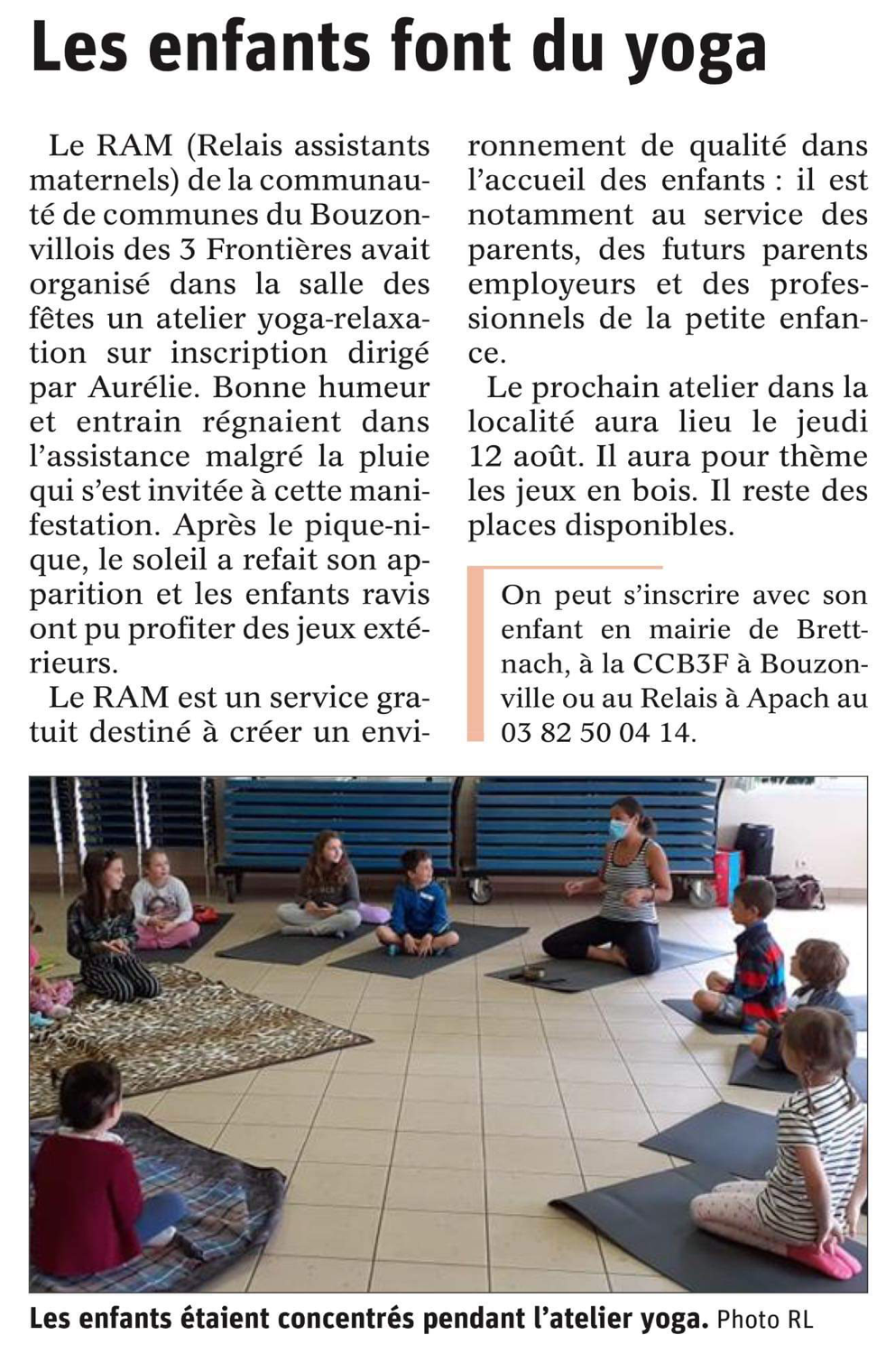 Atelier Yoga pour les enfants du relais des assistantes maternelles de la CCB3F – Brettnach – Juillet 2021