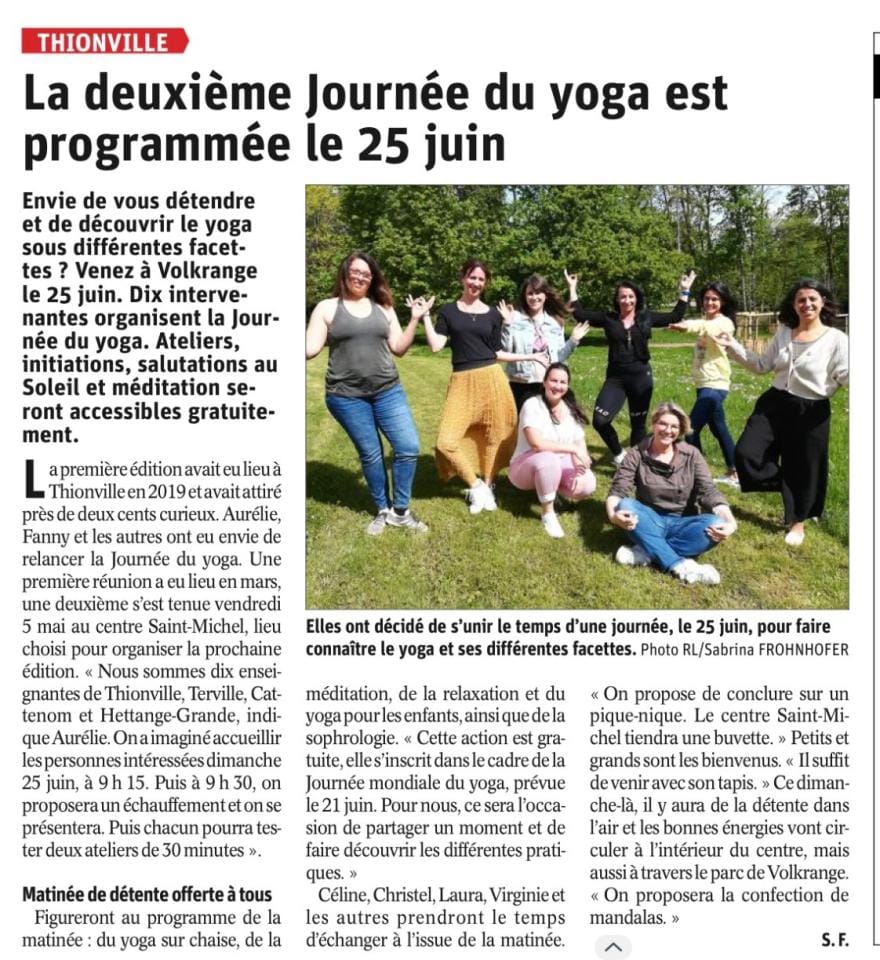 Yoga Postnatal & yoga Prénatal – Article Républicain Lorrain, Janvier 2022 – Terville